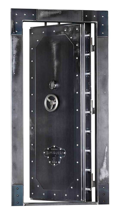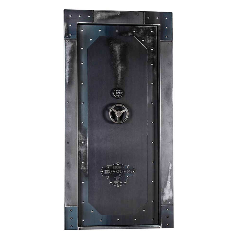 IRONWORKS VAULT DOORS look like something out of the 1800’s. Part art, part furniture, and all security with 120 minute fire protection. Each vault door is hand antiqued and distressed to accentuate the natural variations in the steel, producing an heirloom quality piece for your home or office!