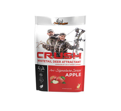 Apples have a long-standing reputation as a superior whitetail attractant. We crushed apples and mixed them with our proprietary attractant to create the ultimate deer attractant, then we added the good stuff – minerals, essential oils, and probiotics; all for the betterment of the deer in your woods! Say “goodbye” to the old way of dumping out apples and say “hello” to CRUSH® Ani-Signature Series™ Apple Attractant! It is as simple as pouring it out wherever you want to attract and hold deer.