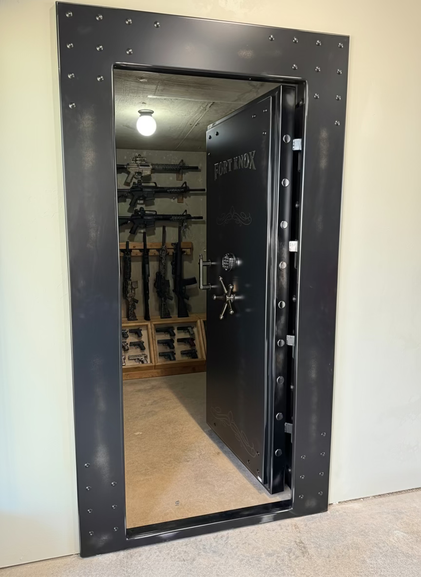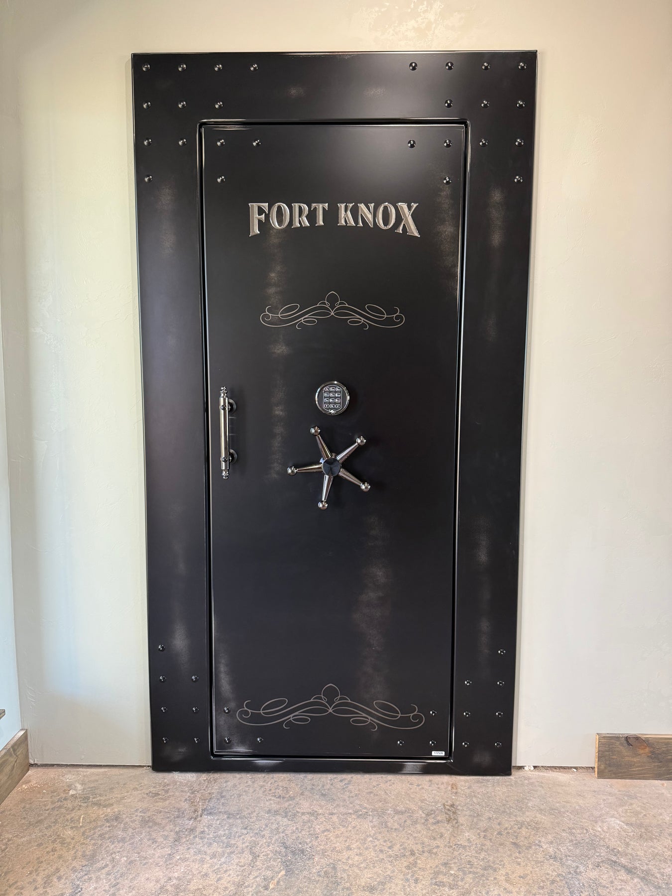 The Fort Knox Protector Vault Door- In Swing is designed to provide maximum security for your valuable possessions. It comes in two sizes, 8240 and 8248, and is constructed with thick, hardened steel. For added protection, you can opt to include extra layers of cut-resistant AR500 steel, torch-resistant stainless steel, or carbon steel. Only Fort Knox offers complete theft protection, making it the ultimate choice for securing your valuables. This specific model, the in-swing 8240, is designed for easy installation in a custom walk-in security room. It features the Inside Release Mechanism, which ensures safety for your whole family and safeguarding of your assets. You have the option of choosing between an attractive high gloss centerpiece with similar features to our Guardian series, or a textured finish for those on a tight budget. This model can serve as a storm shelter or a discreet hideaway, providing peace of mind knowing your loved ones and valuable items are completely secure.