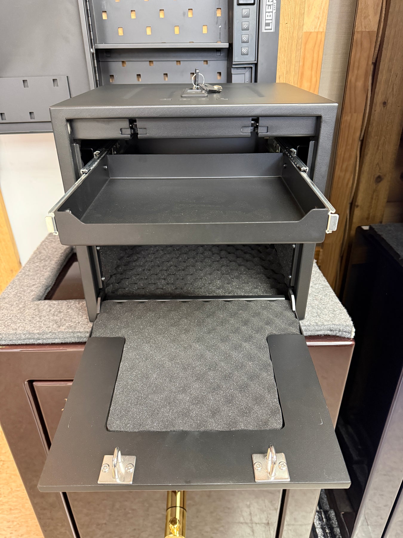 Be ready when it matters with the Liberty HDV 350X. Featuring quick-access fingerprint sensors, wireless connectivity, and a slide-out drawer, these safes offer ultimate convenience and security. With interior LED lighting, a foam-lined interior, and a dual latch closure, your valuables stay protected and organized. Perfect for offices, bedrooms, and personal spaces.