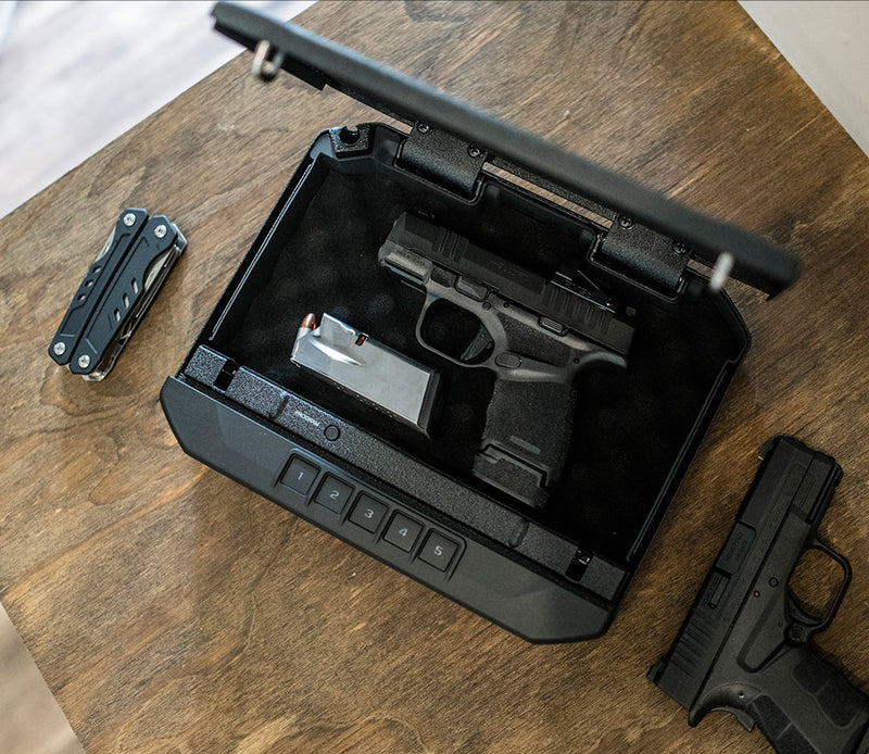 Quick accessto your valuables and documents from the auto open lid. Gaming inspired action of the back-lit keypad offers positive feedback for fast entry and over 40,000 unique combinations.