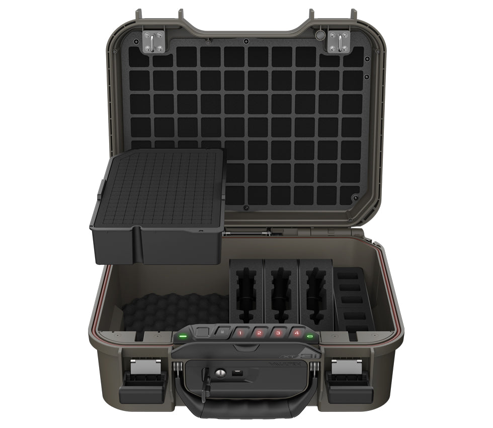 • BUILT-IN LOCK SYSTEM - Incorporates Vaultek’s precision engineered safe technology and dual anti-impact latch design. LifePod XT can be quickly locked - and unlocked using the touch sensitive Smart Sense™ digital keypad, weatherproof HD biometric scanner, or backup manual key.