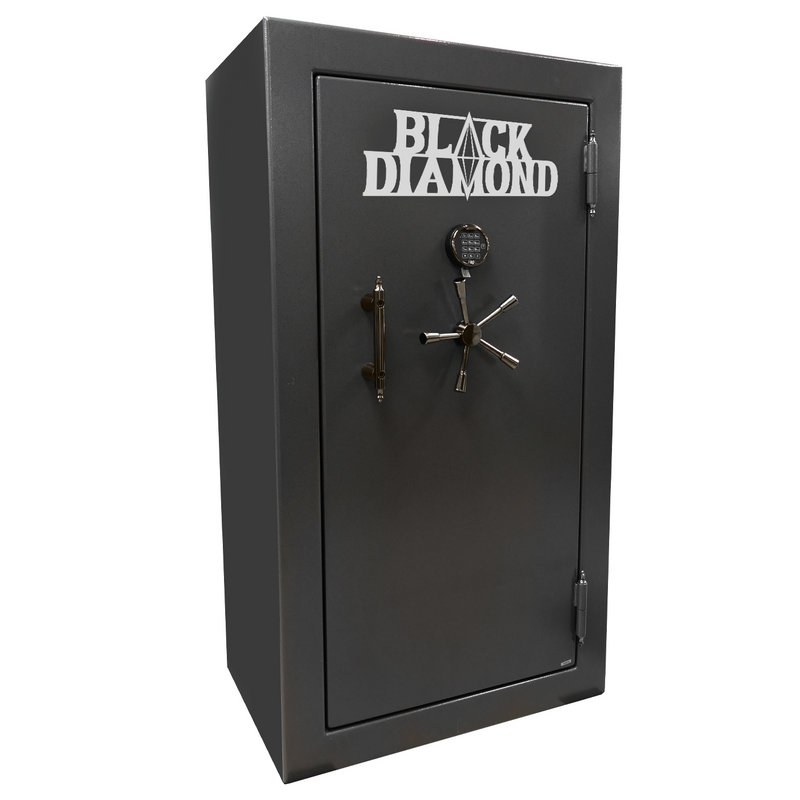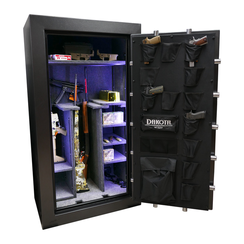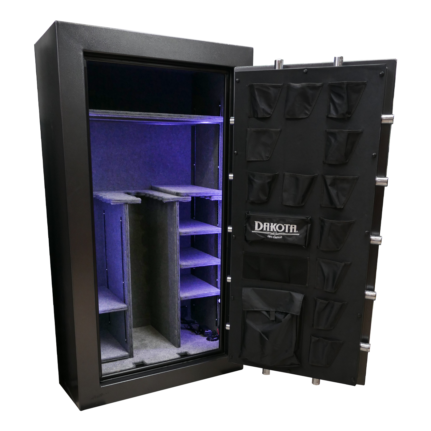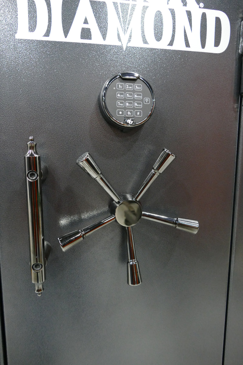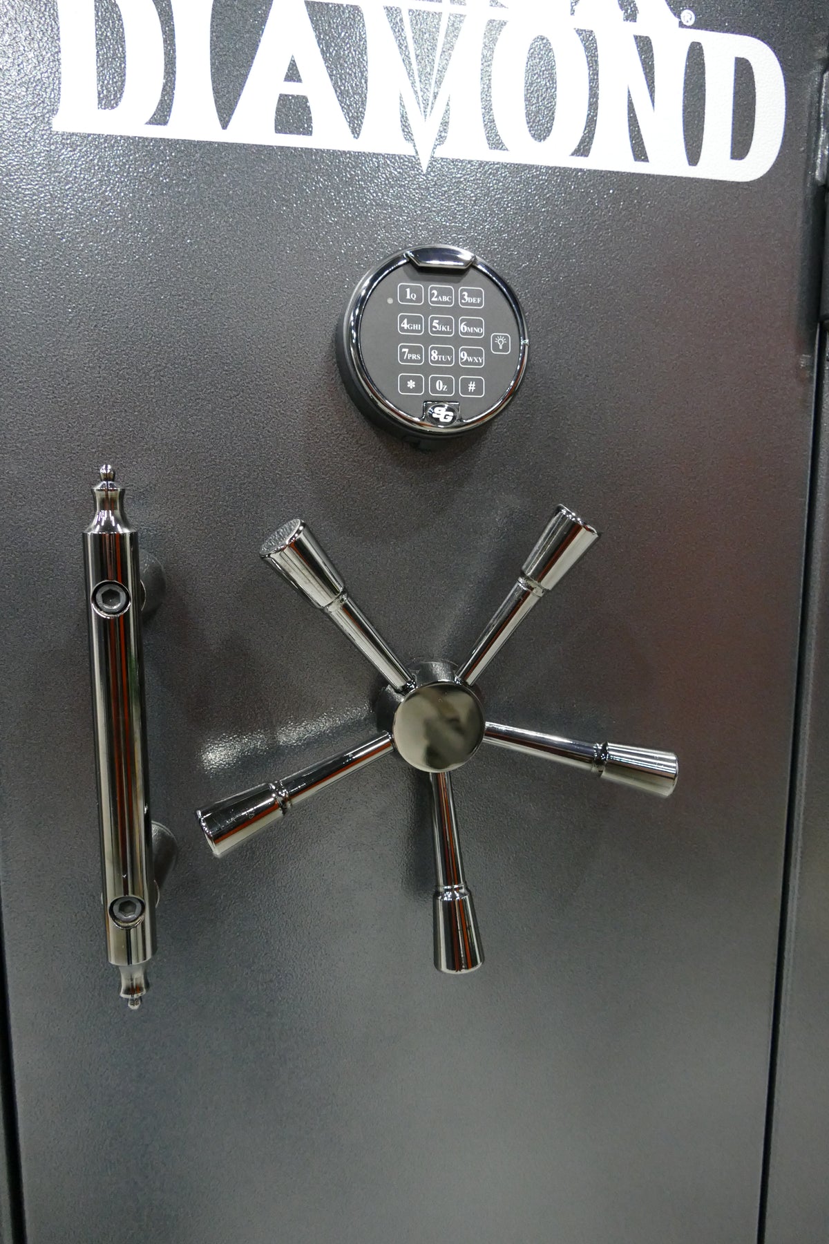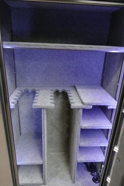 11 Gauge steel body, 4 sided 3 way active 1.5ā bolt works, 90 min. 1250° fire rating, reinforced heavy steel bolt guides, 11 Gauge inner and 11 Gauge outer steel plate TRU composite door, continuous weld design, cold smoke and expanding door seal, 5 spoke handle, heavy vault style pull handle, black chrome hardware, LED light system, U.L. electric outlet, Electronic Lock, door organizer system, gray carpet interior.Ā