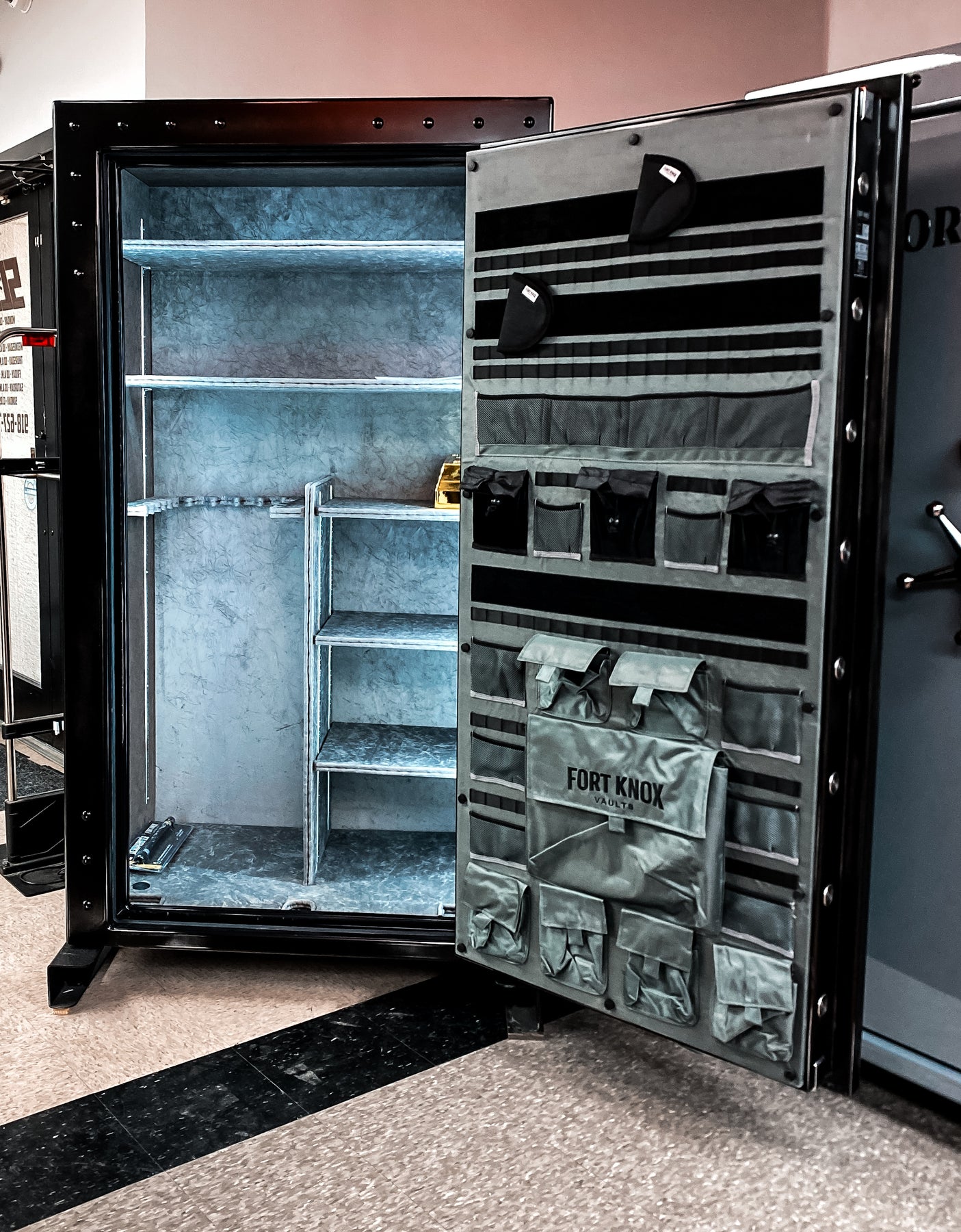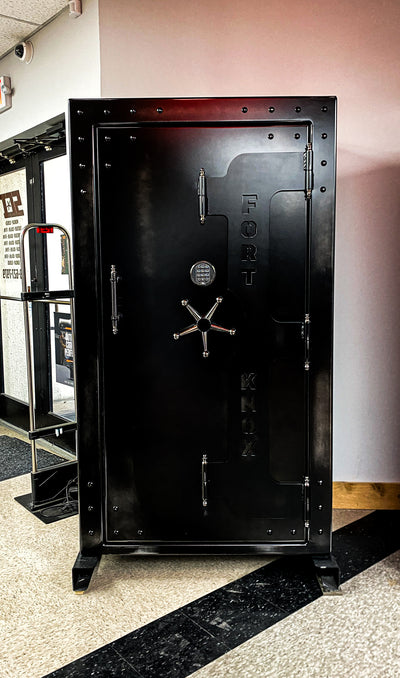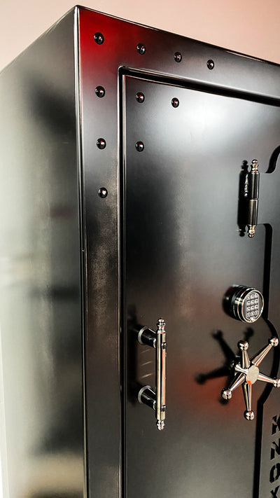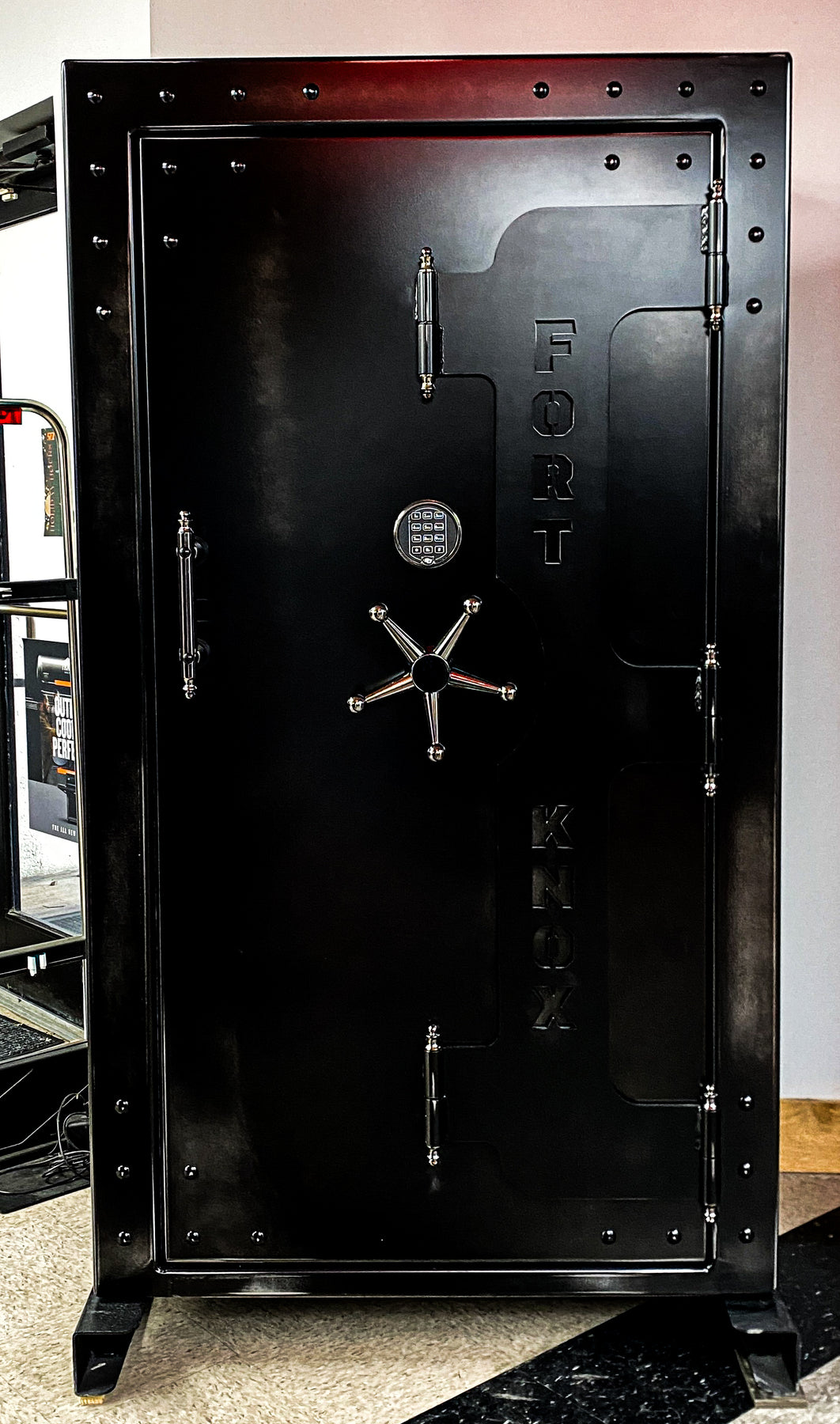 Fort Knox Protector Distressed Black Protector Vault features a 3/16” steel body, 1/2” door-edge steel thickness, 11 locking bolts, and 1680° in 90 min fire protection is superior to other manufacturer’s high-end models, making the Protector an unbeatable value amongst competitors.